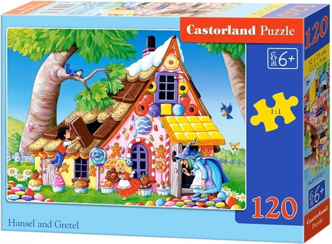 Puzzle colorat pentru copii cu motivul Hansel și Gretel oferă distracție și învățare într-unul. Setul are 120 de piese și, după asamblare, formează o imagine de 32 × 23 cm. Datorită execuției de calitate, culorilor vii și dimensiunii plăcute a pieselor, copiii își exersează răbdarea, concentrarea, recunoașterea formelor și culorilor și viziunea spațială.