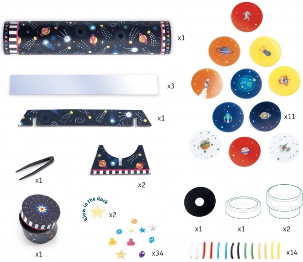 Set creativ cu ajutorul căruia îți vei crea propriul caleidoscop. Caleidoscopul formează, printr-un sistem de oglinzi și elemente colorate, modele unice atunci când privești către o sursă de lumină. Asamblează caleidoscopul urmând instrucțiunile ilustrate și lasă-te fermecat de formele magice. Lungimea caleidoscopului asamblat este de aproximativ 20,5 cm. Potrivit pentru copii de la 7 ani.
