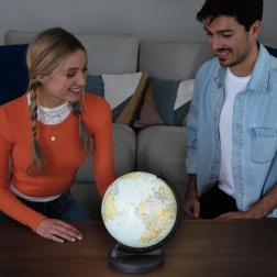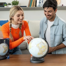 Acest glob puzzle 3D premium, cu diametrul de 22 cm, este alcătuit din 540 de piese din plastic solide, ușor curbate, care se potrivesc impecabil. După asamblare formează o sferă netedă și rezistentă, plasată pe o bază stabilă cu latitudini geografice marcate. Datorită modulului LED integrat, globul luminează spectaculos, devenind atât decorațiune, cât și instrument educațional.