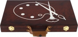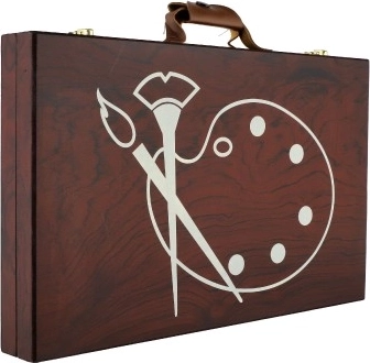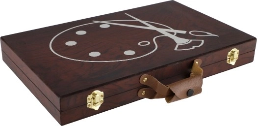 Valiza artistică de lemn este concepută pentru ușurința transportului datorită mânerului practic și materialului durabil.