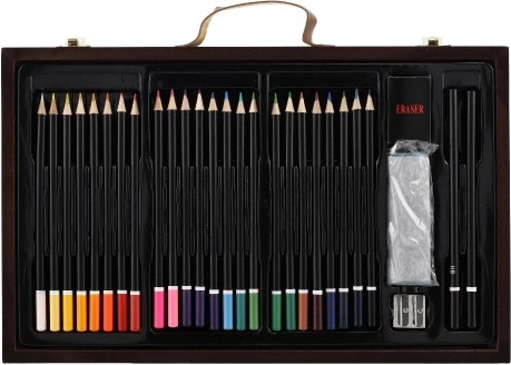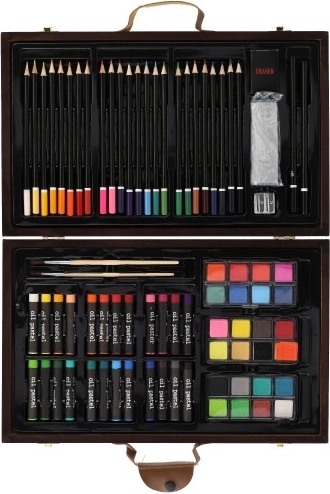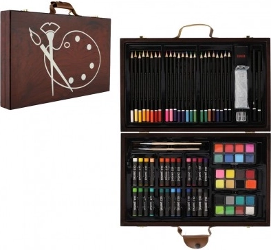 Conține creioane colorate, creioane cerate, creioane grafit, acuarele, pensule, ascuțitoare și radieră - un total de 79 de piese artistice de bază.