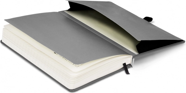 - Accesorii practice – suport pentru stilou, semn de carte panglică și buzunar interior.