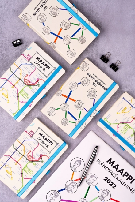 Maappi este un proiect caritabil, al cărui chip principal este Matěj Hošek, în vârstă de șaptesprezece ani, care se confruntă încă din copilărie cu o formă severă a sindromului Asperger. Părinții lui multă vreme nu au știut cum să procedeze, până când, într-o zi, i-au pus în mână o hartă a transportului public din Praga. De atunci, Matěj desenează planuri unice ale rețelelor de metrou. Cele mai bune lucrări ale tânărului designer se regăsesc pe paginile acestui caiet, iar prin achiziționarea lui contribuiți la susținerea proiectelor care îmbunătățesc viața persoanelor cu dizabilități.