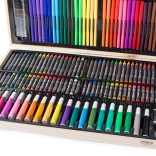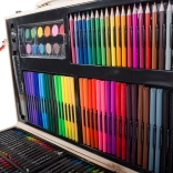 Set complet de artă într-o valiză elegantă din lemn, pentru copii și adulți, oferă până la 180 de piese pentru desen și pictură. Datorită valizei practice cu mâner, ai totul ordonat într-un singur loc și ușor de transportat. Ideală pentru dezvoltarea creativității, exersarea diferitelor tehnici și creație fără sfârșit acasă, la școală sau în călătorii.