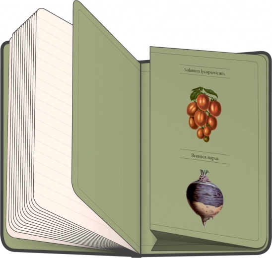 Caiet cu coperți rigide din colecția Kateřina Winterová, cu ilustrații ale diverselor legume, cu închidere elastică, buzunar pentru mărunțișuri și suport pentru creion. În interior găsiți 172 de pagini dictando pe hârtie galbenă pentru a vă nota toate ideile.