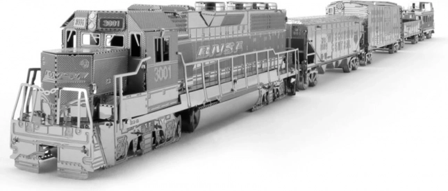 METAL EARTH puzzle 3D Locomotivă de marfă cu 4 vagoane (set deluxe)