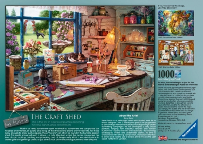 Descoperiți farmecul unui atelier meșteșugăresc liniștit în motivul original al pictorului Steve Read. Calitatea înaltă a execuției și decupajele precise asigură îmbinarea perfectă a pieselor, iar asamblarea devine o relaxare plăcută pentru întreaga familie.