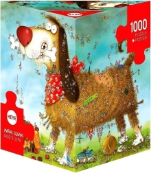 Descoperă perspectiva lumii prin ochii câinilor cu acest puzzle minunat de la caricaturistul Marin Degan. Datorită cutiei triunghiulare neobișnuite, care include și un poster ca model, acest puzzle nu este doar o experiență de asamblare, ci și un frumos element decorativ. Imaginea finalizată are dimensiuni de aproximativ 70 x 50 cm și sparge tiparele prin designul său unic și calitatea sa.