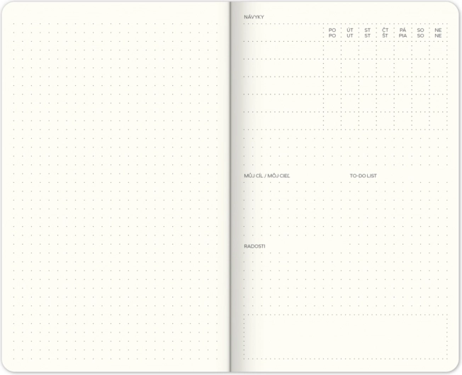 Doriți să vă personalizați planificarea? Acest jurnal săptămânal nedatat My Bullet Planner, în formatul practic 13 × 21 cm, este ideal pentru începători în lumea notării creative. Vă permite să monitorizați obiceiurile, să scrieți liste to‑do și să vă planificați obiectivele personale – iar datorită calendarului nedatat puteți începe oricând. Ediție în cehă/slovacă.