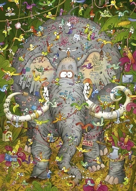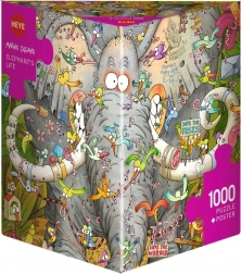 Descoperă distracția pentru întreaga familie cu puzzle-ul Heye Viața Elefanților cu 1000 de piese. Ilustrația caricaturistului Marino Degano încântă prin umorul plin de detalii și culorile vii, incluzând și un poster practic ca model. Ambalajul în cutie triunghiulară neobișnuită este totodată un cadou grozav și o piesă de colecție. Dimensiunea imaginii asamblate este de aproximativ 50 × 70 cm și oferă o provocare plăcută, calitate excelentă a execuției și distracție de durată.