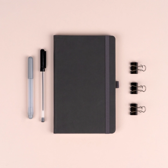 Acest caiet gri stilat este o alegere perfectă pentru notițe zilnice, planificare și journaling. Coperțile tari cu o textură ușor rugoasă oferă un aspect profesional și protejează conținutul. Detaliile practice precum banda elastică, semnul de carte textil și bucla pentru stilou asigură o utilizare comodă acasă, la birou și în călătorii.