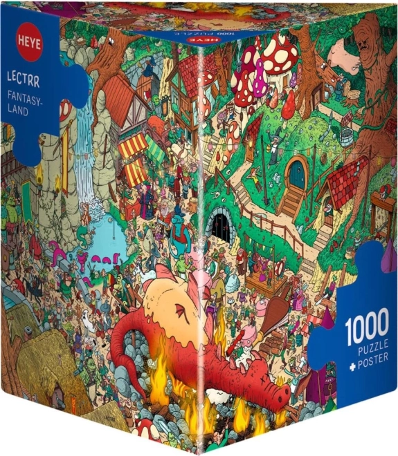 Descoperiți o lume plină de fantezie cu Heye Puzzle Țara fanteziei, care conține 1000 de piese și este ambalat într-o cutie unică triunghiulară.
