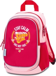 Acest rucsac preșcolar pentru fete, cu motivul pronunțat SUPER GIRL, este conceput pentru confort zilnic și organizare clară. Compartimentul principal încape gustarea, sticla și micile obiecte preferate, în timp ce buzunarul frontal păstrează esențialele mereu la îndemână. Spate căptușit anatomic și bretele căptușite, ajustabile asigură o purtare confortabilă.