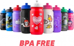 Sticla este fabricată din materiale plastice reciclabile, care respectă strictele norme europene 2011/10 pentru materiale destinate contactului cu alimentele. Datorită capacului cu filet și formei ergonomice, se ține bine în mână și nu curge.