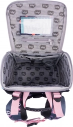 Sistemul de deschidere rabatabil permite acces rapid la manuale direct din bancă. În interior se află un buzunar transparent cu orar și un organizator cu elastic pentru o distribuție uniformă a greutății.