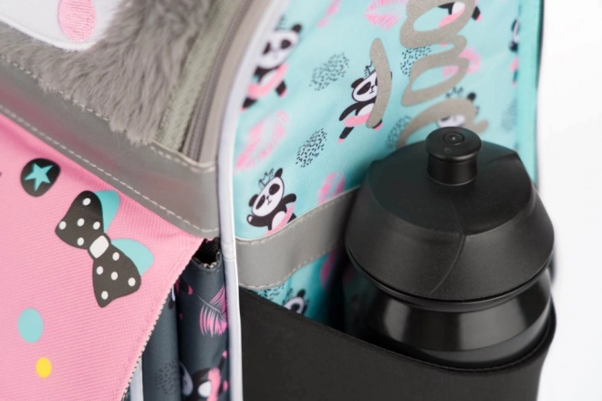 Sistemul practic de deschidere rabatabil le permite copiilor să ajungă la rechizite direct din bancă. În interior găsiți un buzunar transparent cu orar și un organizator bine gândit cu elastic de fixare pentru o distribuție uniformă a greutății. Buzunarele laterale elastice pot ține o sticlă de apă, iar buzunarul frontal izolat cu închidere cu arici menține gustarea proaspătă mai mult timp. Construcția ușoară (1 100 g) își păstrează forma stabilă, baza rigidă permite ghiozdanului să stea singur, iar materialul impermeabil protejează conținutul pe orice vreme.
