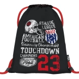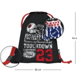 Săculeț practic de la marca Baagl cu motiv de fotbal american, ideal pentru echipament sportiv, încălțăminte de interior și ore de sport. Fabricat din material rezistent și lavabil, are șnururi durabile pentru închidere rapidă și purtare confortabilă pe spate.