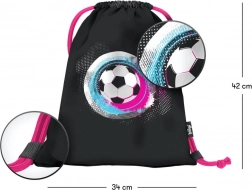 Săculeț stilat și durabil pentru încălțăminte, ideal pentru școală, antrenamente și timpul liber. Motivul roz cu tematică fotbal atrage atenția, iar materialul de calitate asigură o durată de viață lungă și o întreținere ușoară.