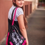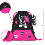 Acest săculeț oferă un design simplu și stilat în îndrăgita combinație de culori negru-roz, cu elemente grafice jucăușe. Datorită buzunărelului practic cu fermoar, amplasat în partea de jos, puteți păstra în siguranță obiecte mici. Sistemul funcțional de închidere cu șnururi rezistente permite totodată purtarea confortabilă pe spate.