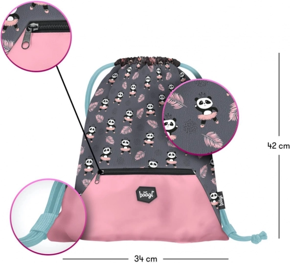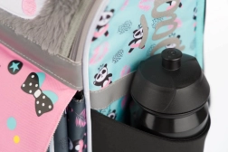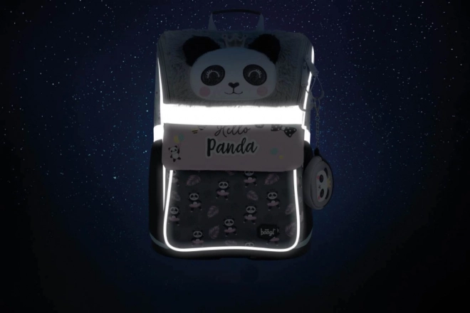 Setul include și un penar clasic cu un singur compartiment, două clapete și fermoar de calitate, precum și un săculeț practic din material rezistent, lavabil, cu buzunar frontal cu fermoar. Întregul set este decorat cu motivul îndrăgit cu panda și este completat de elemente reflectorizante pentru vizibilitate sporită.