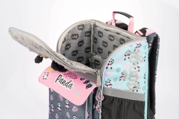 Ghiozdanul școlar BAAGL Zippy Panda este conceput pentru clasele I–II. Oferă corp ranforsat, compartimentare internă bine gândită și un nou sistem de deschidere rabatabilă, datorită căruia școlarul ajunge ușor la toate accesoriile direct de pe bancă. Cu ajutorul sistemului glisant ERGO ADJUSTABLE SYSTEM, bretelele pot fi reglate precis în funcție de înălțimea copilului, astfel încât rucsacul stă confortabil pe tot parcursul zilei.