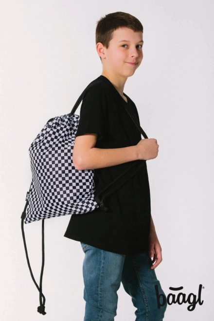 Săculeț școlar practic pentru încălțăminte de interior sau echipament sportiv, cu motivul Skate Ska de la Baagl. Oferă material rezistent și ușor de curățat, logo care luminează în întuneric și strângere comodă cu șnururi, care permite purtarea pe spate.