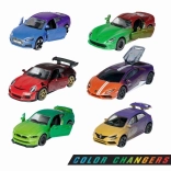 Aceste mașinuțe detaliate oferă efectul unic Color Changers: la răcire până la aprox. 10 °C își schimbă culoarea, iar la încălzire până la aprox. 22 °C revin la nuanța inițială. Fiecare model este realizat din metal cu accesorii din plastic, are mers liber, părți care se deschid și roți cu suspensie pentru o rulare mai lină.
