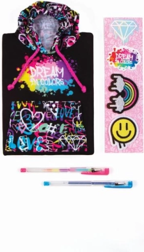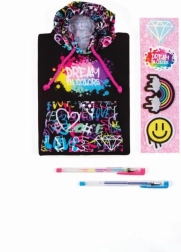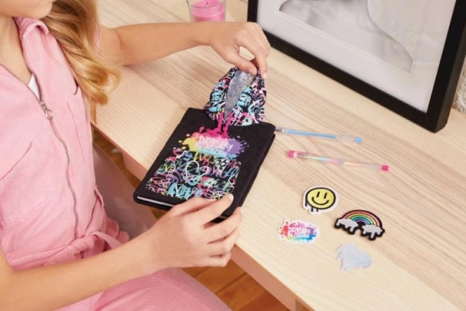 Blocnotesul cu glugă în stil graffiti este perfect pentru fetele de la 6 ani care doresc să-și exprime creativitatea. Acest jurnal modern este locul ideal pentru notarea experiențelor, viselor secrete sau planurilor aventuroase. Vine cu două pixuri, autocolante și patch-uri adezive, permițându-vă să personalizați fiecare jurnal.