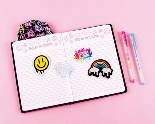 Pachetul include pixuri, autocolante și patch-uri adezive care permit exprimarea creativă și personalizarea.