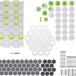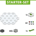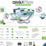 Setul de început Gravitrax conține peste 100 de piese și 18 elemente de construcție diferite, permițând crearea unei piste de curse sau un traseu complicat plin de curbe și obstacole pentru una sau mai multe bile.