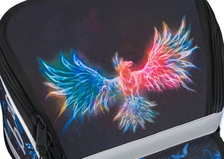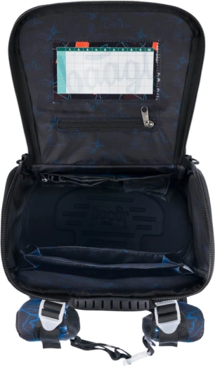 • Ghiozdanul dispune de un nou sistem rabatabil de deschidere, datorită căruia elevul ajunge mai ușor la rechizite direct din bancă.