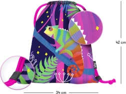 Săculețul BAAGL, ușor și durabil, cu un motiv stilat de cameleon, este potrivit pentru școală, activități și sport. Datorită materialului rezistent, ușor de curățat, face față utilizării zilnice și îți păstrează lucrurile uscate și în siguranță.