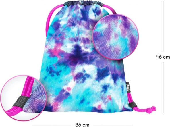Sacul de spate elegant BAAGL Stellar, în variantă tie-dye multicoloră, este o alegere perfectă pentru activități în timpul liber, pentru școală și pentru călătorii. Datorită materialului textil ușor, dar rezistent, și strângerii facile cu șnur, transportă în siguranță încălțămintea și micile obiecte de zi cu zi.