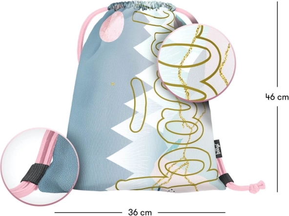 Închiderea cu șnururi oferă și funcția de bretele pentru umeri, astfel încât săculețul poate fi purtat confortabil pe spate. Dimensiunile compacte și greutatea redusă îl fac un accesoriu excelent pentru școală, activități extrașcolare și excursii scurte.