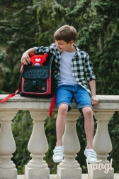 Sistemul rabatabil de deschidere permite accesul la conținutul ghiozdanului direct de pe bancă. Organizatorul interior cu elastic și buzunarul cu orar păstrează rechizitele școlare ordonate la locul lor.