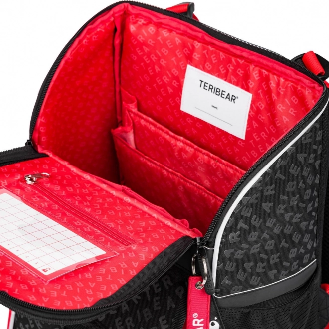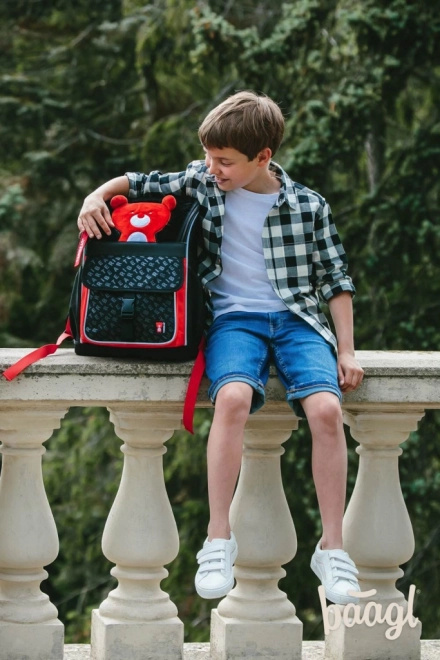 Ghiozdanul școlar BAAGL Zippy TERIBEAR, ușor și ergonomic, este ideal pentru elevii din clasa I. Oferă sistem dorsal reglabil glisant, materiale rezistente și impermeabile, elemente reflectorizante și o organizare inteligentă a spațiului interior pentru depozitarea clară a rechizitelor școlare.