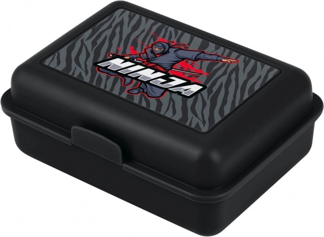 Pe capacul cutiei este plasat un motiv curajos de ninja, care atrage toți micii iubitori de acțiune.