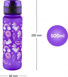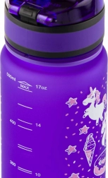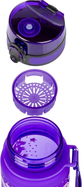 Bucurați-vă de confort maxim și siguranță cu această sticlă de băut. Fabricată din material tritan de calitate, care nu are miros și nu conține substanțe nocive cum ar fi BPA, PVC sau ftalați, sticla este potrivită și pentru băuturi fierbinți, datorită strecurătoarei integrate (sită) pentru limonadă cu fructe sau ceai. Capacul cu închidere previne scurgerile de lichid, în timp ce mânerul asigură transportul ușor. Toate acestea într-un design atrăgător cu motiv colorat de unicorn, care va atrage atenția fiecărui școlar.