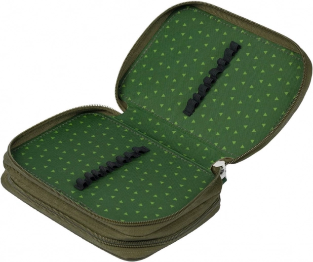 Elasticile de calitate din interiorul penarului susțin cu ușurință chiar și creioanele triunghiulare groase, facilitând accesul și menținând ordinea. Un buzunar mic suplimentar oferă spațiu pentru monede sau alte obiecte mici. Deși penarul este livrat fără conținut, construcția și designul său excelent îl fac alegerea ideală pentru studenți de toate vârstele.