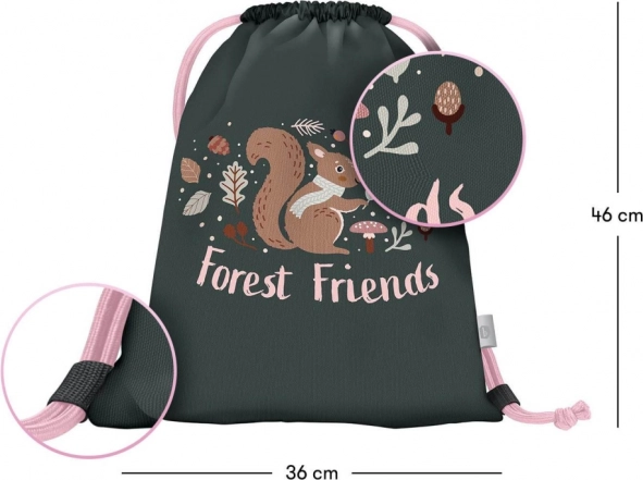Săculețul este decorat cu un motiv de veveriță și inscripția 'Forest Friends', ceea ce îl face ideal pentru iubitorii de natură.