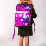 • Pe clapeta buzunarului frontal puteți prinde liber insigne, care sunt oferite cadou împreună cu ghiozdanul.