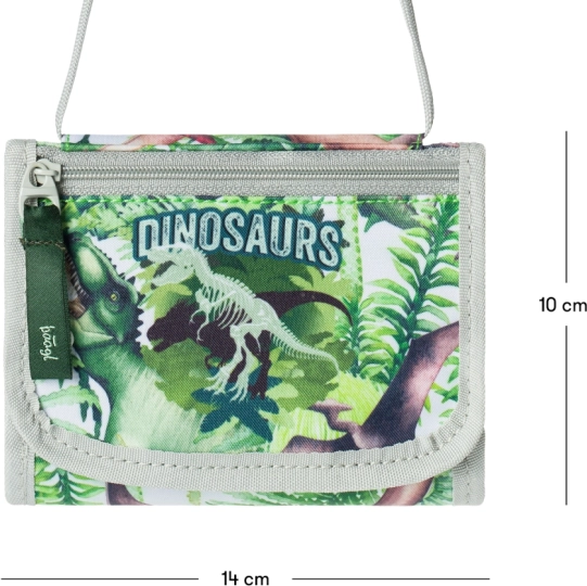 Portofelul stilat pentru gât, cu un motiv de dinozauri pronunțat, este ideal pentru copii la școală, activități și excursii. Datorită materialului textil robust, rezistă excelent utilizării zilnice, rămânând în același timp ușor și confortabil de purtat.