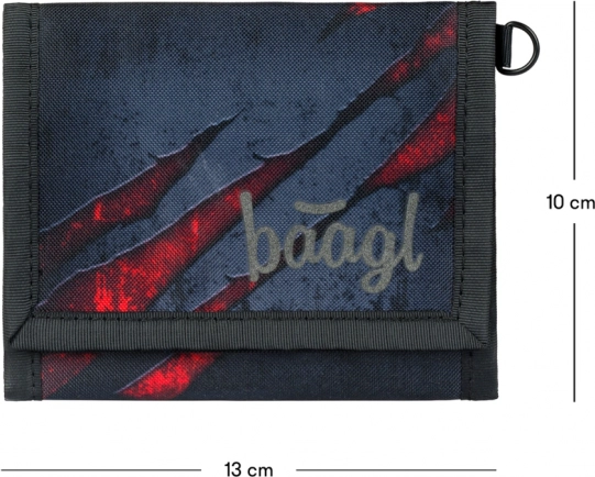 Portofelul pentru elevi Baagl Lavă, stilat, din material rezistent și durabil, oferă închidere sigură cu arici, ochi pentru carabină și un design modern, potrivit atât pentru școală, cât și pentru timpul liber.