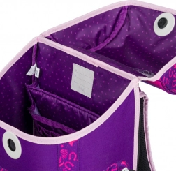Set școlar stilat cu motiv cu cai pentru micii școlari din clasa I, include ghiozdan ergonomic, penar încăpător și săculeț practic pentru încălțăminte. Ghiozdanul oferă spate modelat ergonomic și sistem reglabil ERGO ADJUSTABLE SYSTEM pentru ajustare perfectă, închidere magnetică Fidlock pentru deschidere ușoară, elemente reflectorizante pentru siguranță și greutate redusă sub 1 200 g. Setul se remarcă prin execuție de calitate, materiale rezistente la apă și un design frumos mov-roz cu motive ecvine.