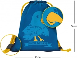 Săculețul albastru este decorat cu grafica unui corb și inscripția 'Ravenclaw', care va bucura orice fan Harry Potter.