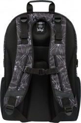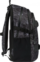 Rucsacul școlar oferă 3 compartimente separate cu organizator intern și un buzunar căptușit pentru laptop sau tabletă de până la 15″. Spatele modelat ergonomic, bretelele de umăr complet reglabile, chinga de piept și chingile laterale de compresie asigură o purtare confortabilă și o potrivire perfectă pe corp. Două chingi frontale pentru fixarea skateboardului, buzunare laterale din plasă pentru sticlă, material impermeabil și elemente reflectorizante subliniază atât practicitatea, cât și siguranța. Rucsacurile din gama SKATE sunt, de asemenea, testate și certificate într-un laborator acreditat.