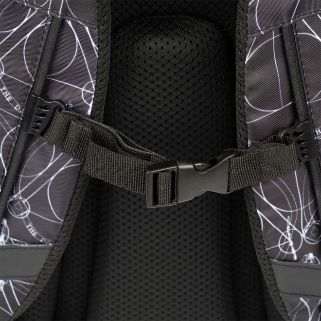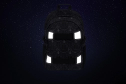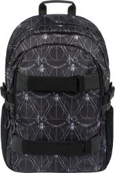 Două chingi frontale rezistente permit fixarea în siguranță a skateboardului. Designul modern alb‑negru, cu motivul Talismanelor Morții, și elementele reflectorizante garantează că veți fi vizibili și veți arăta grozav.