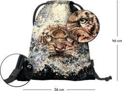 Săculeț stilat pentru spate cu motiv de tigru din colecția eARTh by Lukero, ideal pentru încălțăminte și mărunțișuri pentru activități de timp liber. Oferă material rezistent și ușor de curățat și închidere prin șnururi robuste, care permit în același timp purtare confortabilă pe spate.