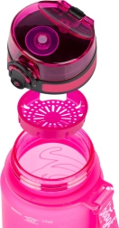 Descoperă o sticlă practică de băut din tritan certificat, care nu absoarbe mirosurile și nu conține substanțe nocive. Datorită capacului cu blocare, băutura rămâne în siguranță în interior, fie că ești la școală, la birou sau la antrenament. Sita integrată îți permite să pregătești apă răcoritoare cu fructe sau ceai – materialul este potrivit și pentru băuturi fierbinți.