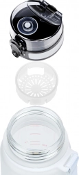 Sticlă ușoară și rezistentă din tritan certificat, pentru hidratare comodă pe tot parcursul zilei. Datorită capacului inteligent cu siguranță, nu scapă nici o picătură, iar muștiucul flip-top permite să bei rapid cu o singură mână. Sita integrată este excelentă pentru ape infuzate cu fructe și pentru ceai – materialul este potrivit și pentru băuturi fierbinți.